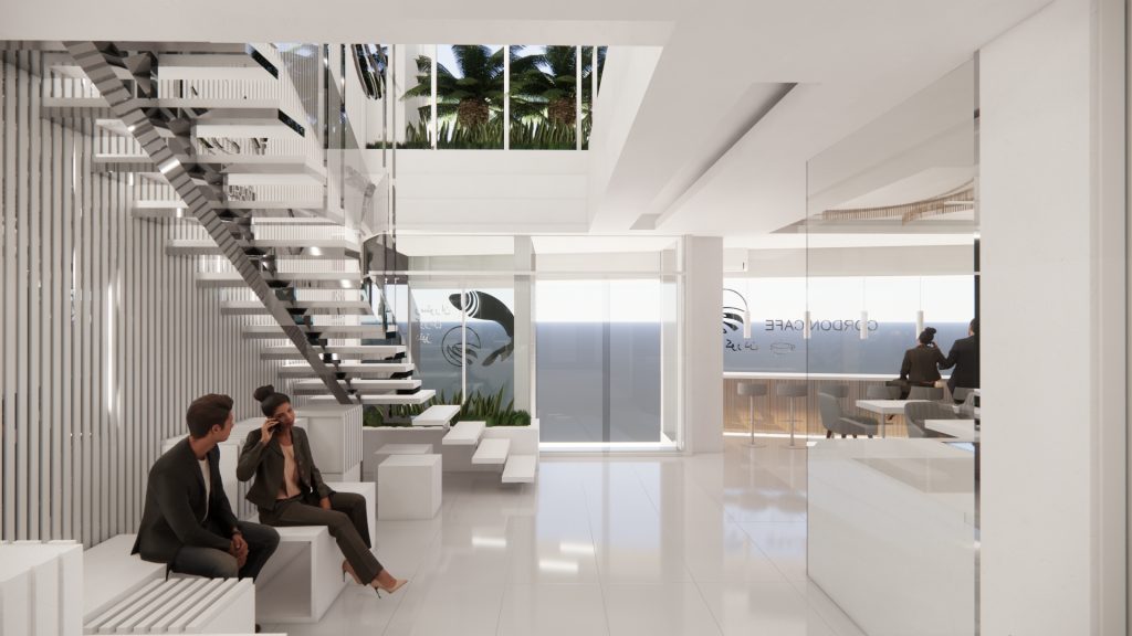 ایجاد گشایش تراس در طبقه اول، فضای سالن صبحانه، با پوشش گیاهی بومی، نخل بعنوان عنصر مهمی از هویت محلی، چنان که همیشه هر خانه، نخل خود را داشته است،… و هر شخص در طول زندگی اش چندین نخل می کاشت و قصه ها و نامهای هر بخش از نخل در معماری و ساخته های دستی و زندگی جریان داشته است.